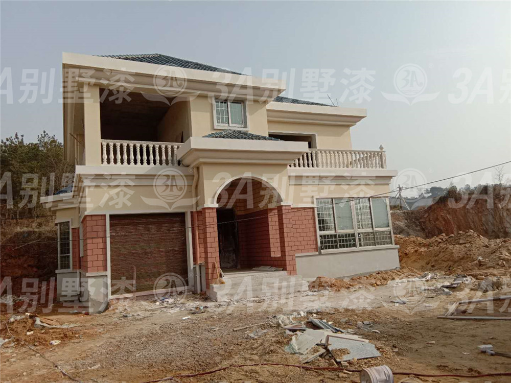 3A別墅純石漆-米黃、白、棗紅搭配效果